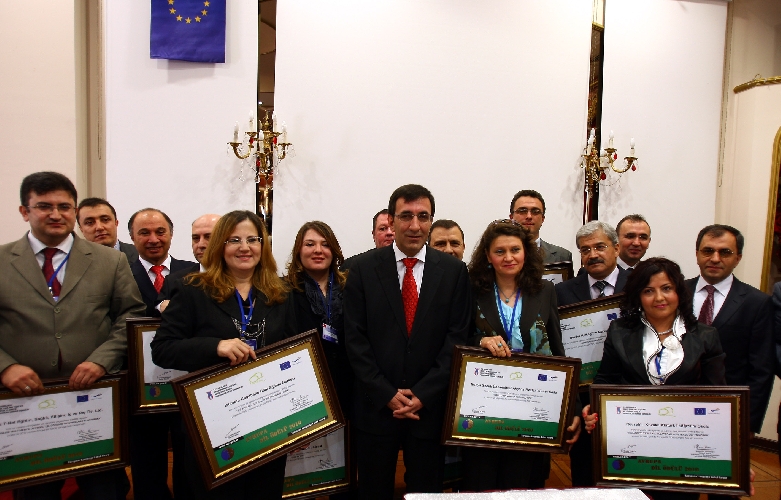 Soflonline Site Yöneticisi ve Proje Koordinatörü Ok. Ahmet Uçar Sol Başta. 2010 Avrupa Dil Ödülünü Alırken